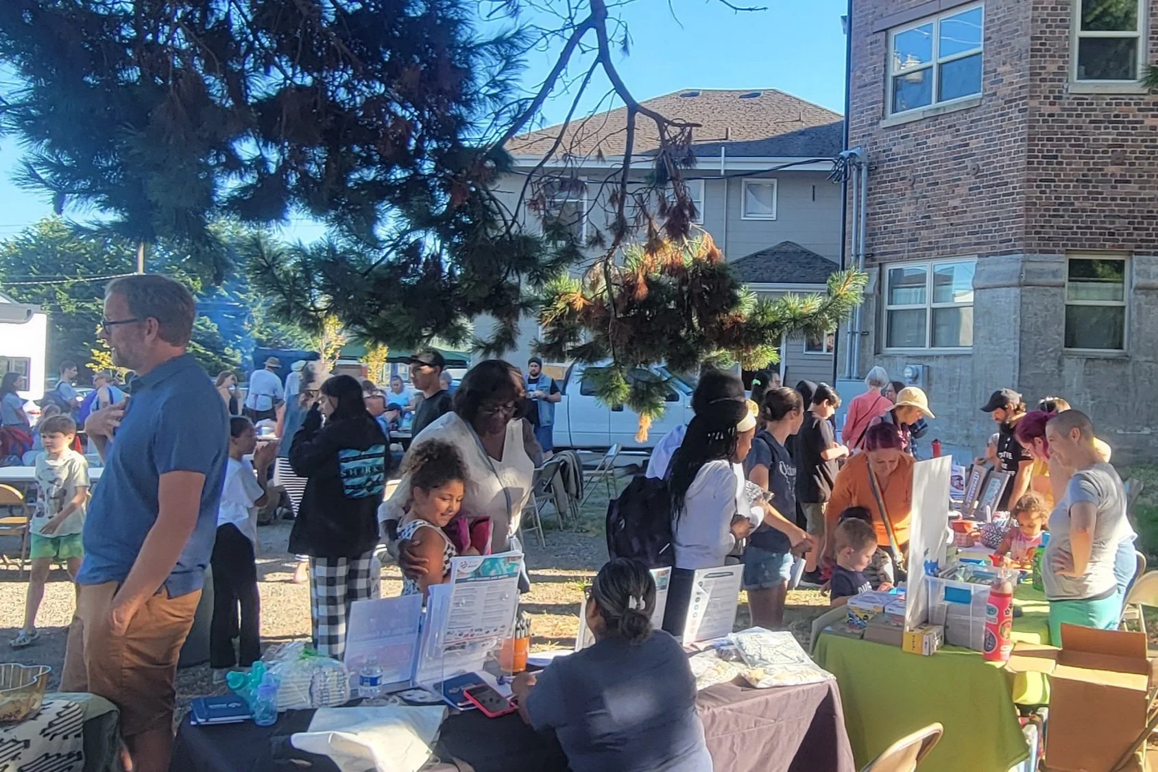 250+ people attended this year’s Back 2 School Night BBQ with eight BNC Partners participating in the community resource fair. As music and smoke from the caterer’s BBQ grill filled the neighborhood BNC Partner Organizations provided resources and activities for a fun family night celebrating the return of the school year. The BNC distributed 160 backpacks with school supplies for elementary, middle, and high school students while BNC Volunteer-AmeriCorps members from the Imagine Justice Project filled and distributed 166 youth hygiene kits and helped serve dinner.